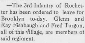 Glenn Way Fishbaugh was born December 3, 1895. He was serving in the New York National Guard, having joined on June 19, 1916, when the United States entered World War I. Glenn died on October 5, 1918, from wounds he received during the battle of