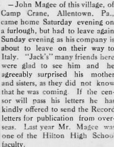 John Henry Magee was born on August 9, 1892. He was inducted into the United States Army on April 20, 1918 and discharged on April 25, 1919. John passed away at the age of 101 on February 6, 1994.