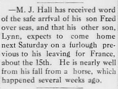 Lynn James Hall was born on July 15, 1895. He was inducted into the United States Army on February 24, 1918, and discharged on August 21, 1919. Lynn passed away on August 7, 1947.